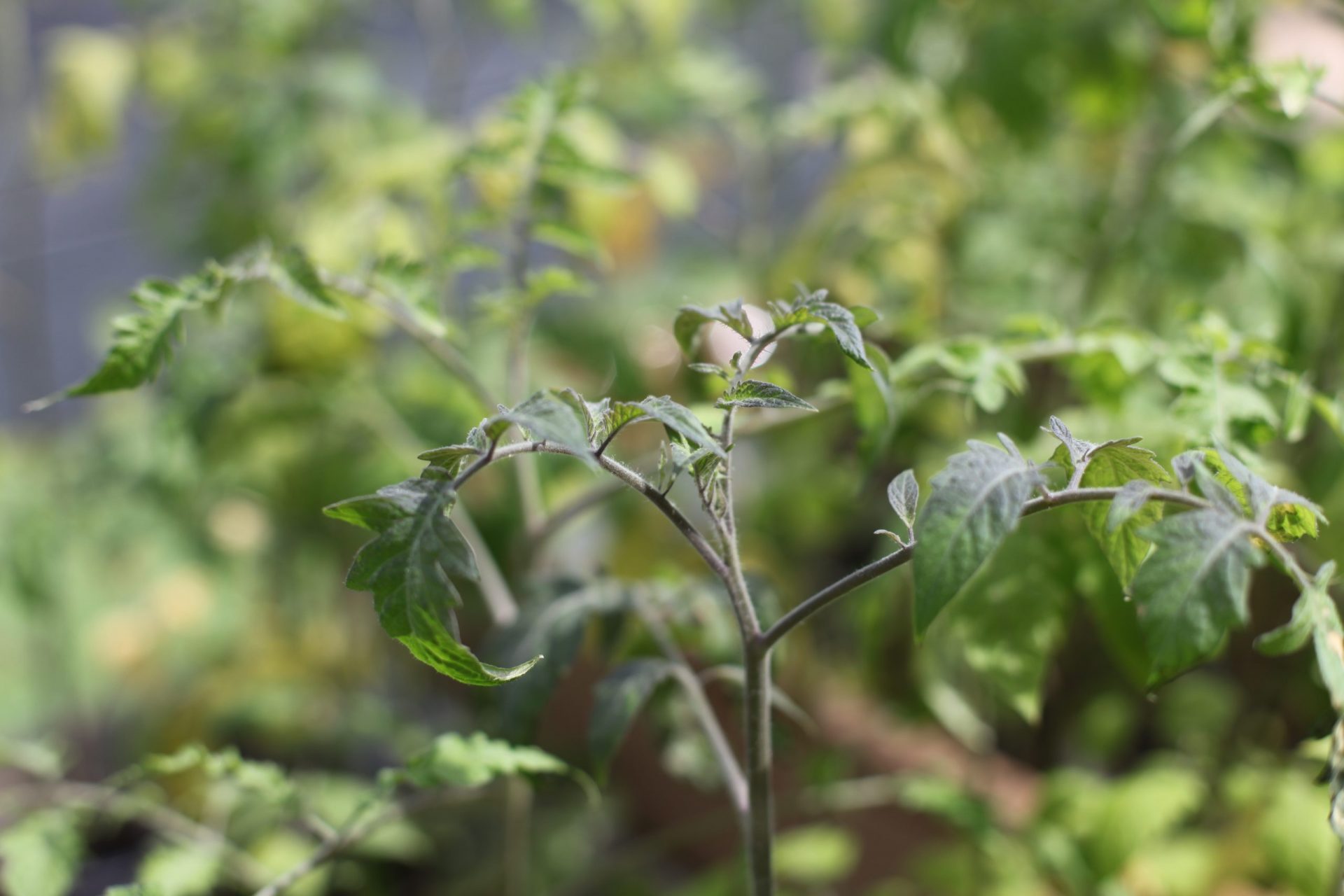 Pomidory nawożone humusem wyglądają najsłabiej, mają drobne, dosyć rzadkie listki, ale owocują.