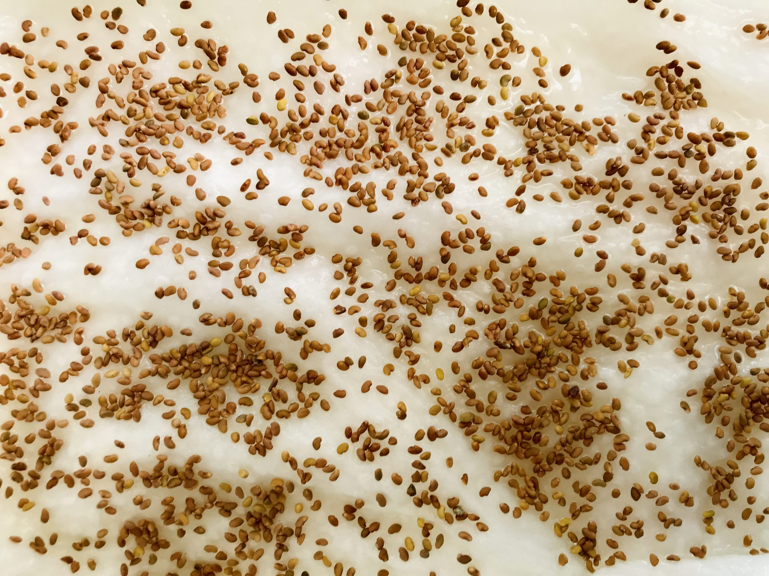 Wystarczy wziąć słoik i wsypać do niego nasiona. Ilość zależy od pojemności słoika – na litrowy można dać dwie, trzy łyżeczki. Następnie do słoika wlać wodę , mniej więcej do połowy objętości i zostawić nasiona do namoczenia na kilka godzin. Słoika nie należy zakręcać, ale jego wierzch trzeba nakryć gazą (można ją przymocować gumką).